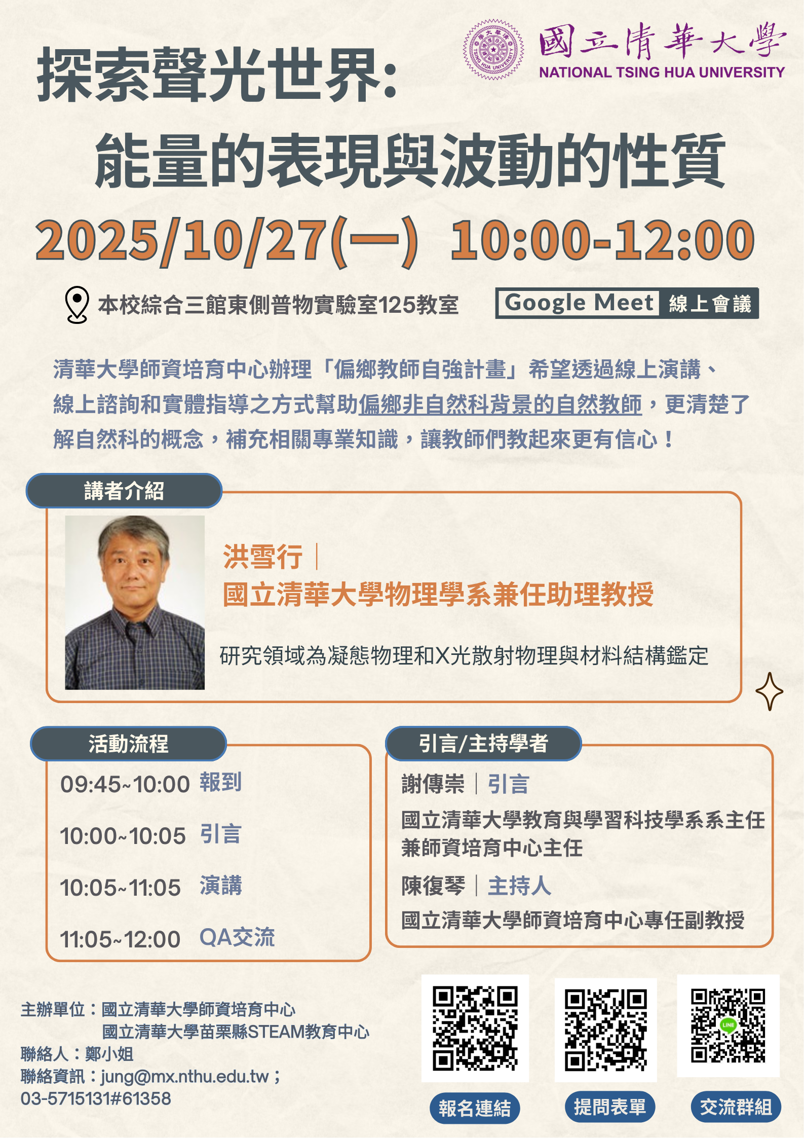 | (三) | 講師:清華大學物理系洪雪行兼任助理教授。 |