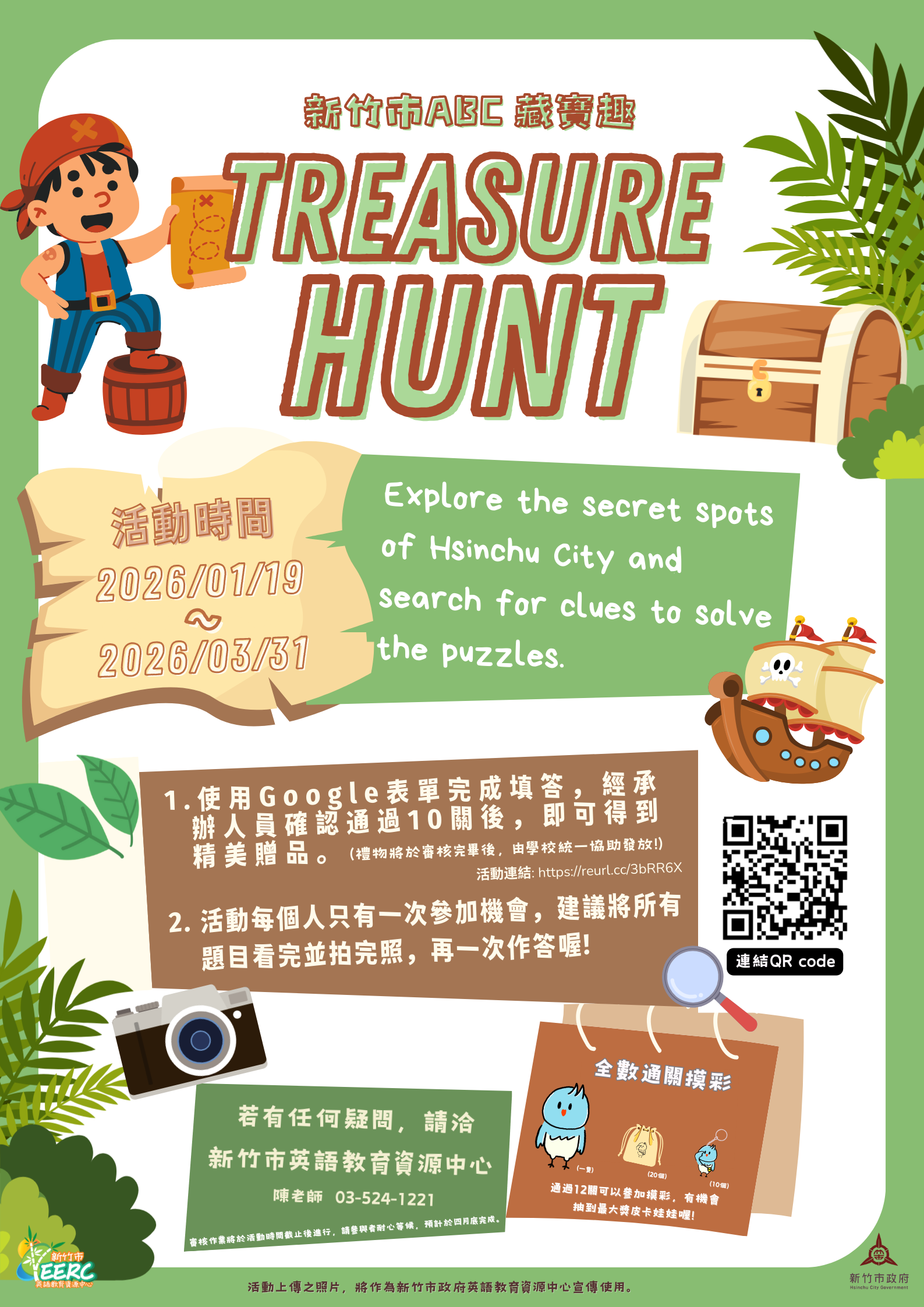 | 二、 | 為提供本市中小學生從生活中尋找生活化英語的機會,認 識新竹在地特色,透過闖關提升本市學生英語力。 |