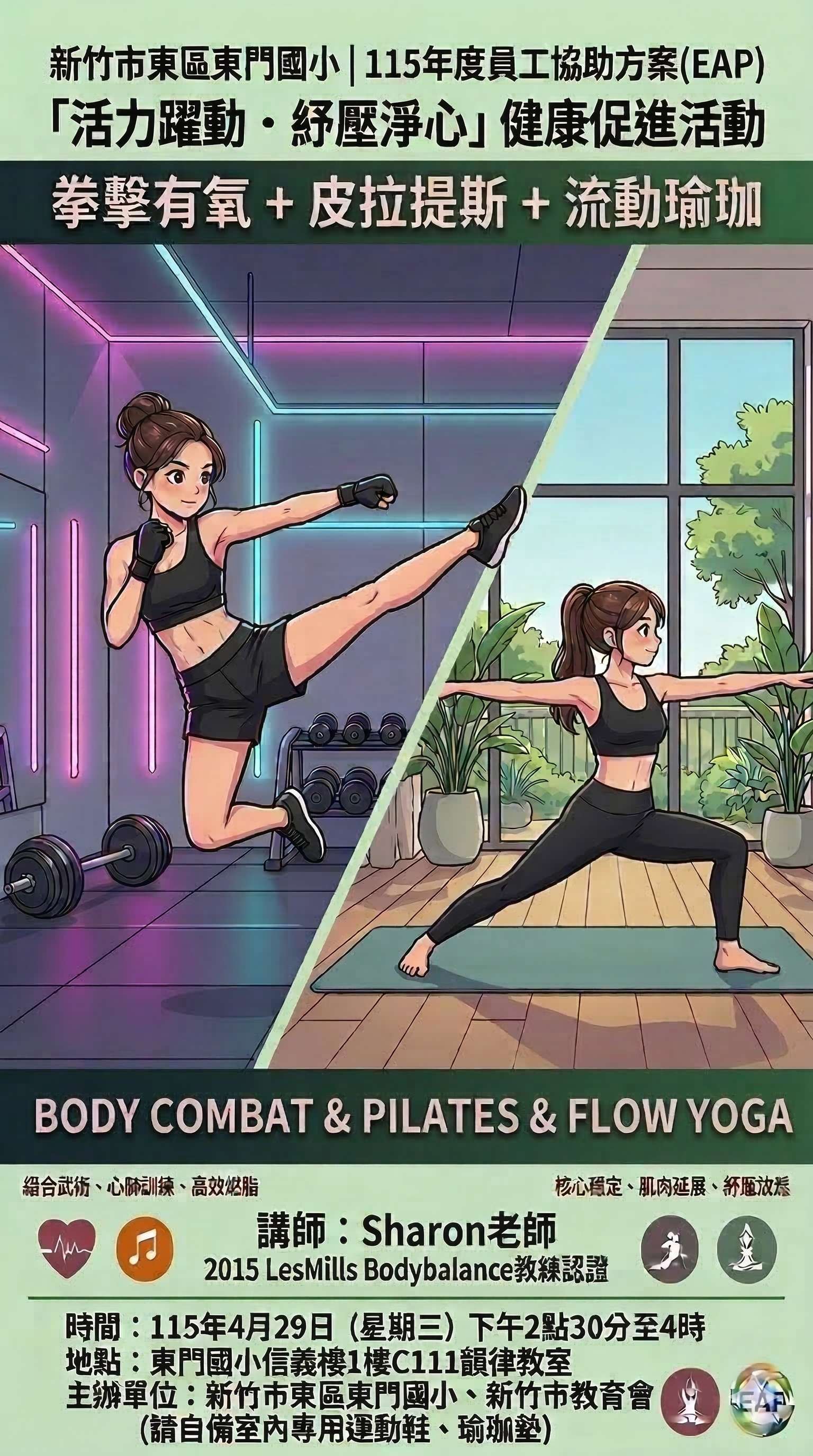 (一)為促進教職員工身心健康,特規劃辦理本次健康促進活動。透過拳擊有氧、皮拉提斯與流動瑜珈之結合,協助同仁於公務繁忙之餘釋放工作壓力、增強心肺功能與核心肌力,進而提升職場活力與身心平衡。