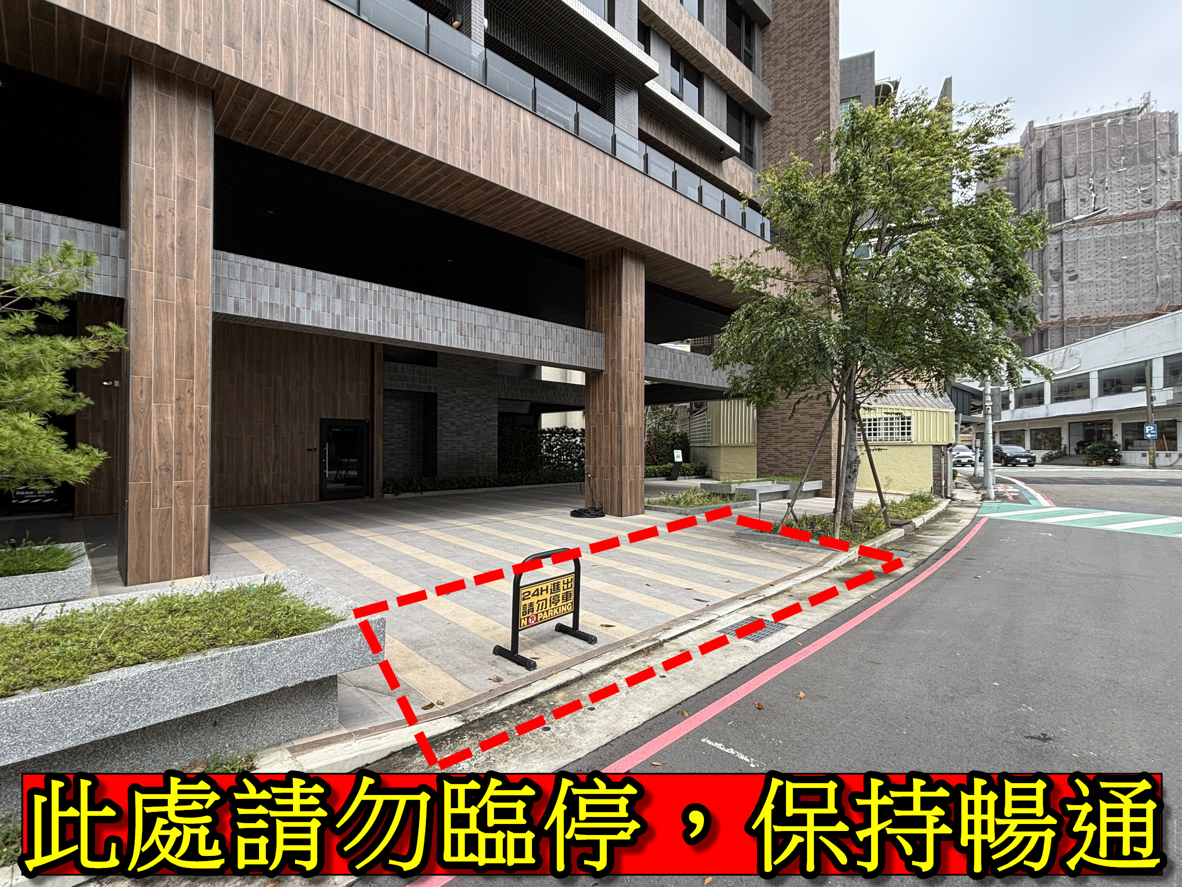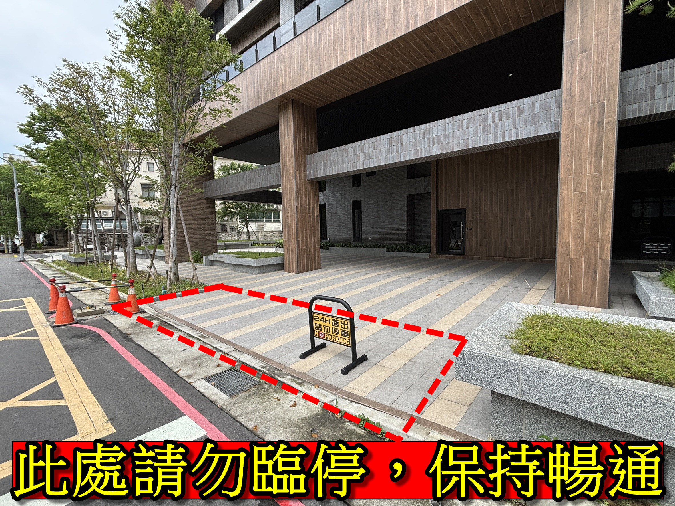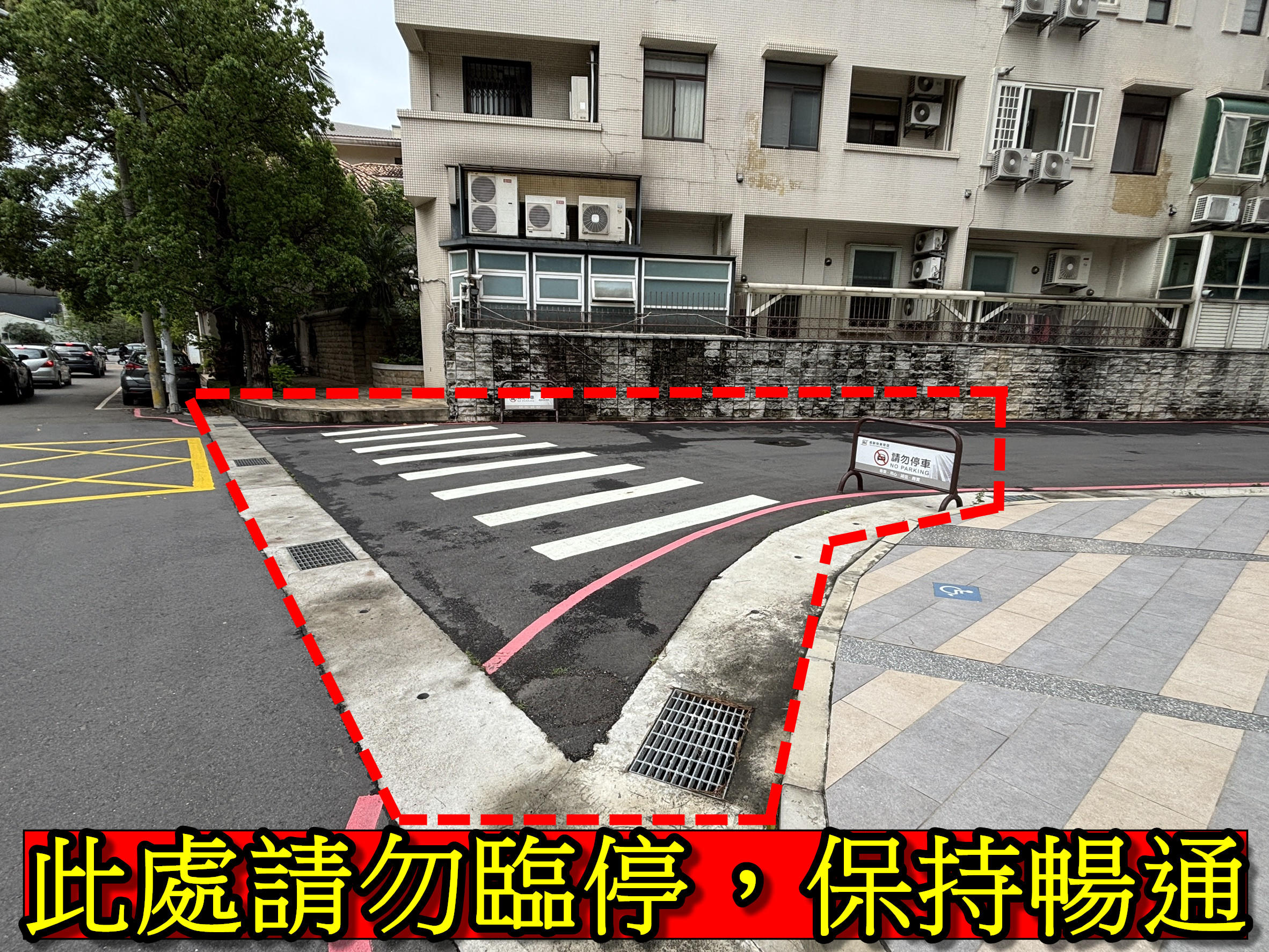 本校門口對側(王喬雙橡園)接送區開放上放學時段臨時停車,請家長注意勿臨停於圖中位置,避免造成居民進出不便,敬請配合謝謝!